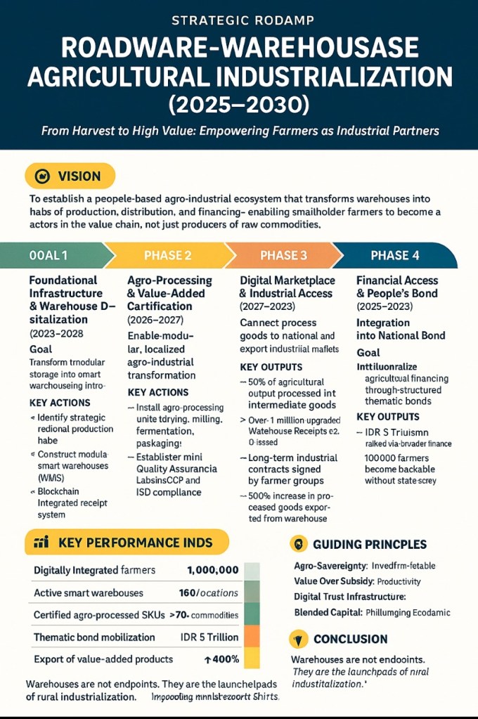 Saya menatap gambar skematik di layar. Saya mulai mencatat dan memfokuskan mata pada satu kata di pojok layar: Agro Sovereign Industrial Node (ASIN) yang terdiri dari Agro-Processing Enabled Warehouse (APEW), Integration to Supply Chain Industry : Agro Verticalization, Digital Assetization: Receipts as Industrial-Grade Collateral, . Interlink ke Logistic Fintech dan Trade Finance,