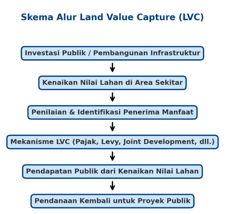 Yuni menimpali, “Itu kegagalan value recycling . Rente tanah naik bukan karena kerja pemilik, tapi karena eksternalitas positif seperti infrastruktur . Di banyak negara, kenaikan ini di-capture kembali lewat Land Value Capture : betterment levy, penjualan hak bangun, joint development, atau tax increment financing.”