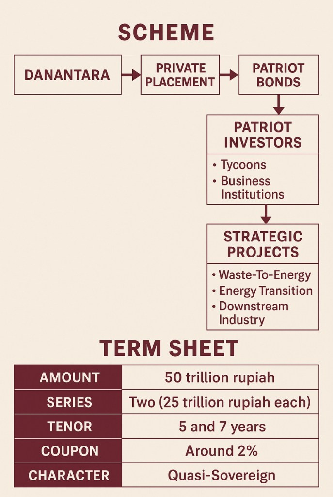 Patriot Bond Danantara menghadirkan dilema klasik antara politik pembangunan vs. disiplin pasar. Di satu sisi, ia mencerminkan upaya kreatif mencari dana di luar utang publik resmi. Di sisi lain, secara fundamental ia rapuh: kupon terlalu rendah, likuiditas nihil, dan motivasi investor hanya bisa ditopang oleh konsesi politik atau reputasi nasionalisme semu.