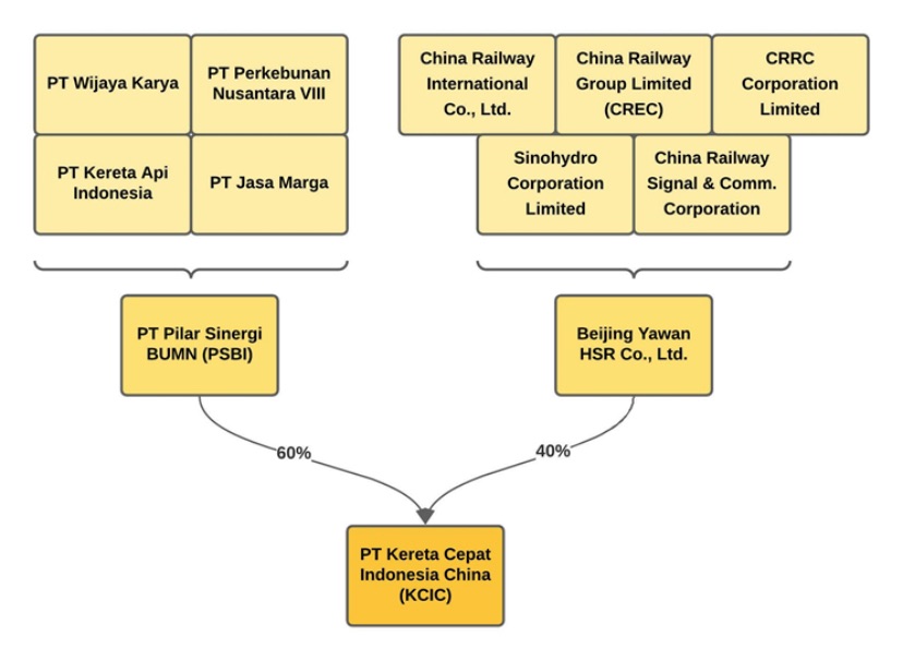 Ketika proyek kereta cepat Jakarta–Bandung dimulai tahun 2015, pemerintah berulang kali menegaskan bahwa pembiayaannya tidak menggunakan dana APBN dan tidak memerlukan jaminan pemerintah. Prinsip itu tertuang eksplisit dalam Perpres No. 107 Tahun 2015. Saat itu, alasan utama pemerintah memilih proposal Tiongkok dibanding Jepang adalah karena China Development Bank (CDB) bersedia memberikan pendanaan besar tanpa jaminan negara.Keduanya membentuk PT Kereta Cepat Indonesia China (KCIC) dengan komposisi saham 60% Indonesia, 40% China.