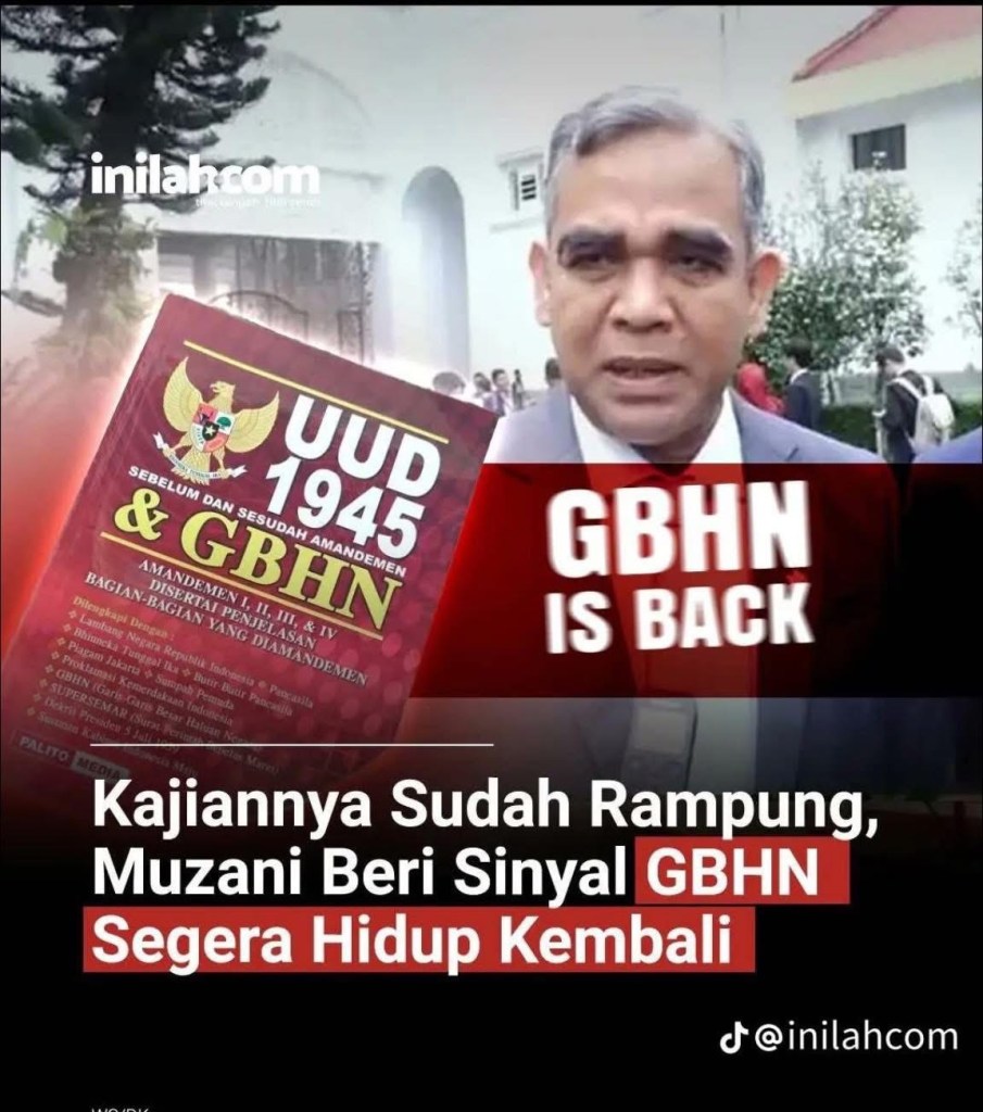 Majelis Permusyawaratan Rakyat (MPR), melalui Ketua-nya Ahmad Muzani, menyatakan bahwa draf PPHN ( Pokok‑Pokok Haluan Negara ) telah “selesai dirumuskan” dan akan dibahas dengan Prabowo Subianto sebagai Presiden RI. PPHN sebagai versi baru dari GBHN menghadirkan peluang strategis menyusun arah pembangunan nasional secara terstruktur. Namun, agar tidak menjadi dokumen retorik, perlu diputuskan secara jelas bentuk hukum penerapannya (Tap MPR, UU, atau kombinasi) serta mekanisme implementasi dan supervisinya.