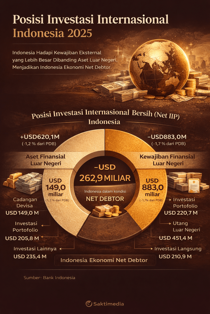 Indonesia sendiri berada dalam posisi rentan dengan Posisi Investasi Internasional (PII) yang negatif, ketergantungan pembiayaan eksternal, dan keterbatasan kedaulatan finansial—kondisi yang dalam literatur ekonomi politik global disebut sebagai financial constraint on foreign policy autonomy (Strange, The Retreat of the State).