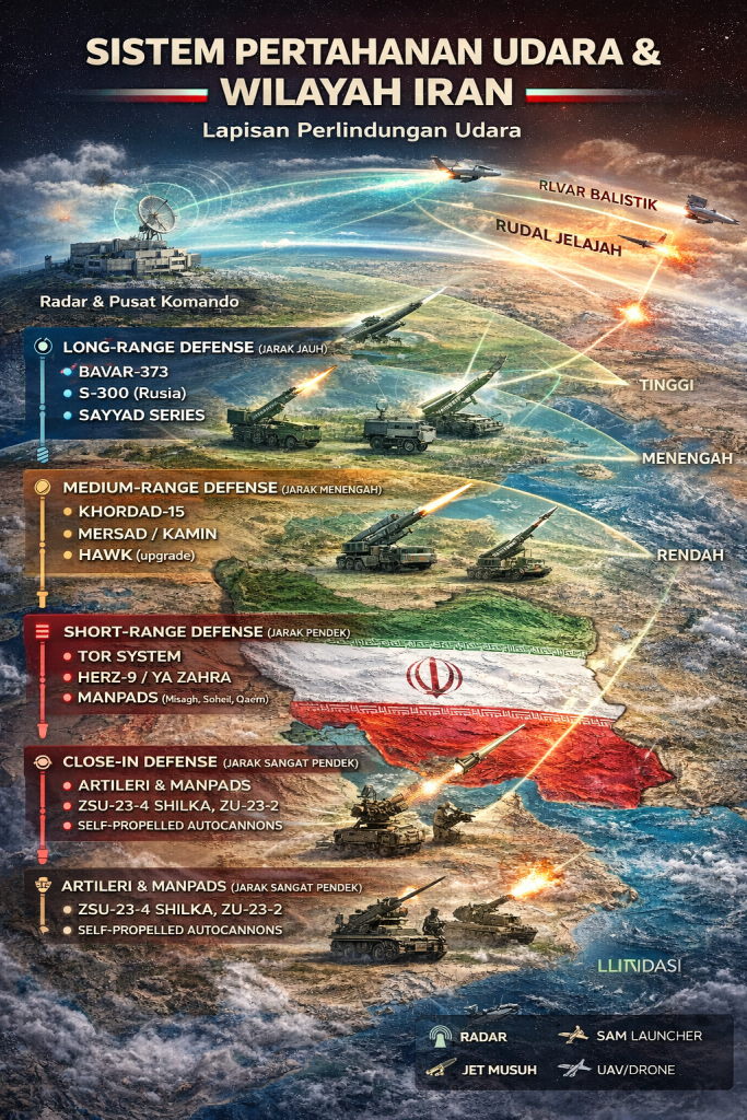 Kedua. Sistem militer Iran tidak sepenuhnya tergantung pada satu pusat komando atau satu jenis senjata, tetapi tersebar luas—termasuk program misil balistik yang sangat besar dan terdistribusi, serta unit mobile yang sulit dipatahkan dengan serangan udara semata. Selama bertahun-tahun Teheran juga membangun strategi deterrence by punishment yang mengandalkan kemampuan rudal dan drone untuk memastikan balasan masih bisa diluncurkan meskipun sebagian infrastruktur rusak. Di sisi lain, integrasi hubungan strategis dengan China dan Rusia berdimensi militer, politik, dan techologi pertahanan.