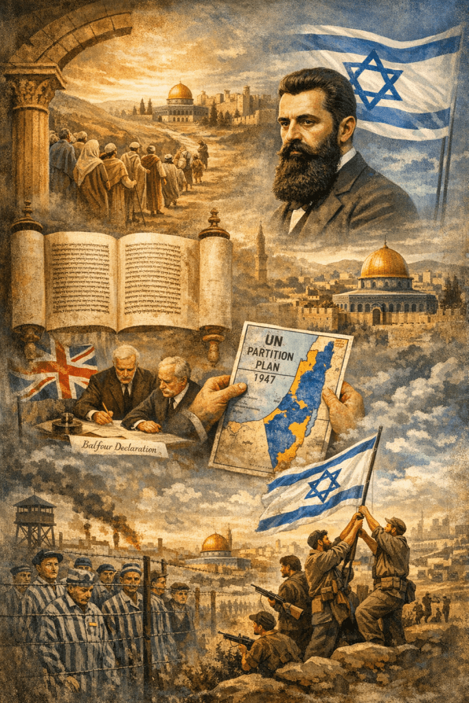 Perubahan mendasar terjadi pada akhir abad ke-19 dengan munculnya Zionism—sebuah gerakan yang dipelopori oleh Theodor Herzl. Zionisme tidak lahir dalam ruang hampa. Ia merupakan respons terhadap meningkatnya antisemitisme di Eropa serta bagian dari gelombang nasionalisme modern yang melanda berbagai bangsa pada masa itu. Dalam kerangka ini, gagasan “tanah yang dijanjikan” mengalami transformasi, dari simbol religius menjadi landasan legitimasi bagi proyek politik pembentukan negara bangsa.